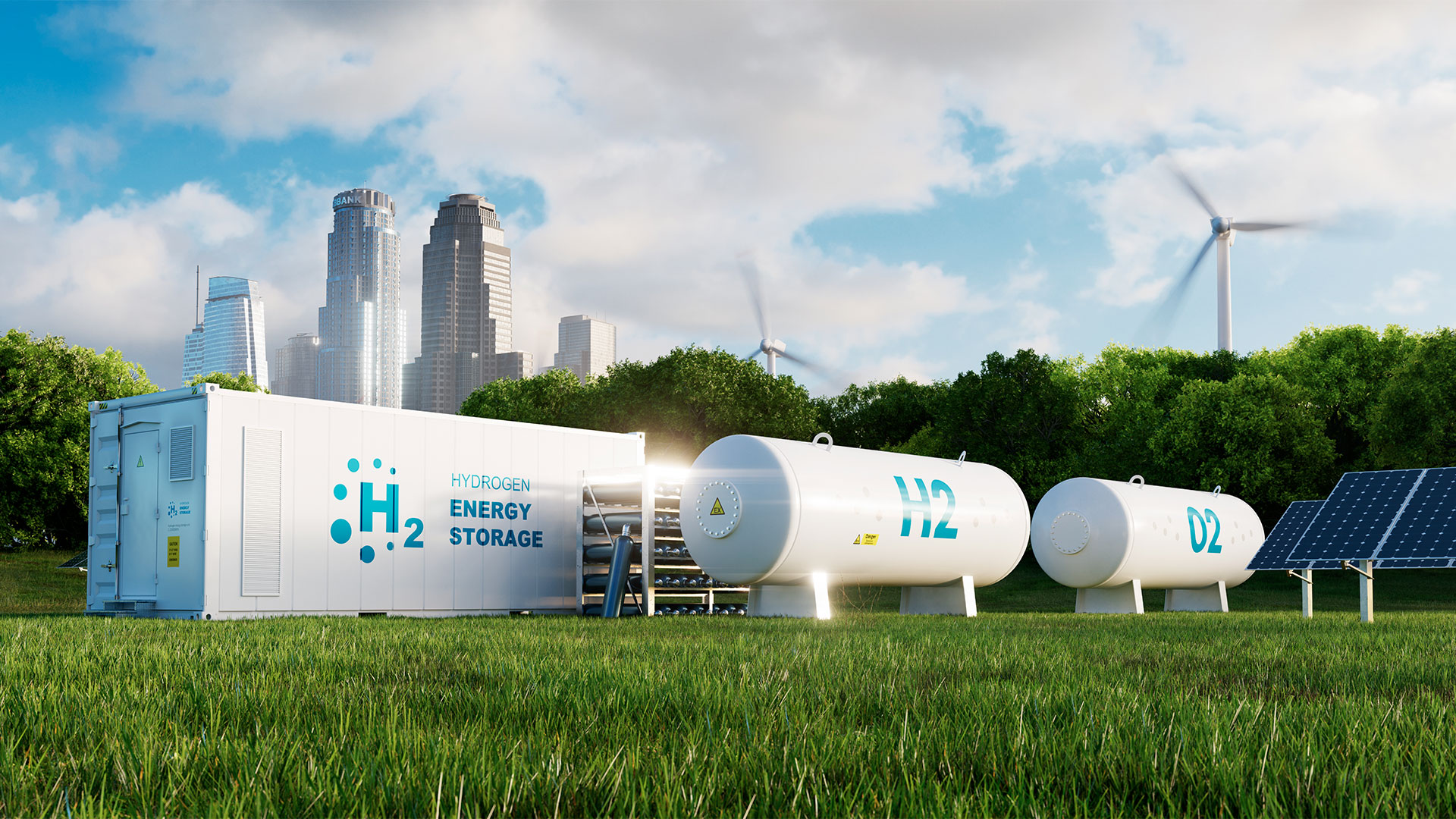 GENERATORI E ACCUMULATORI DI H2 – HYDROGEN, 100% GREEN – alimentati da impianto Fotovoltaico.